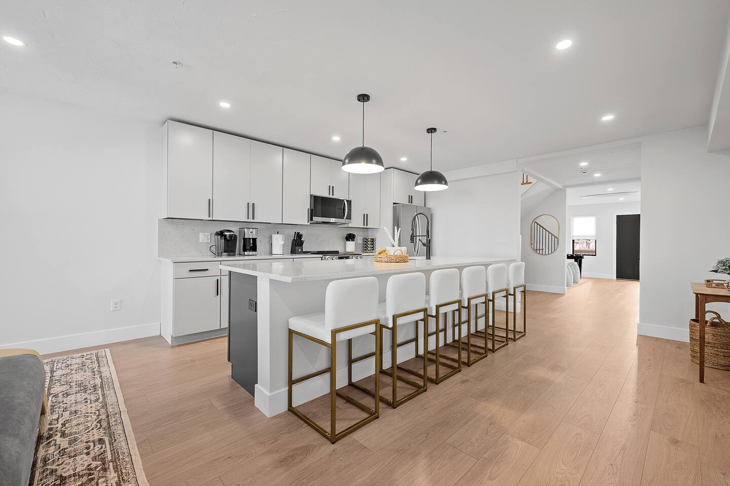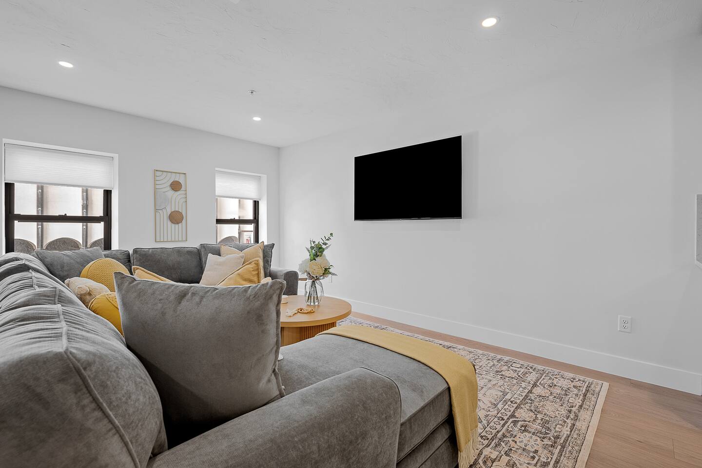 First level: Open concept kitchen, living room, dining room. Separate bonus room can be used as a second living room, a game room or an office. One 1/2 bathroom. Second level: Three specious bedrooms and two full bathrooms. The apartment was remodeled in 2025. The decor is modern, neutral and elegant. Step outside into the Downtown Worcester Business District, a vibrant walkable neighborhood with event venues and the city's best restaurants.