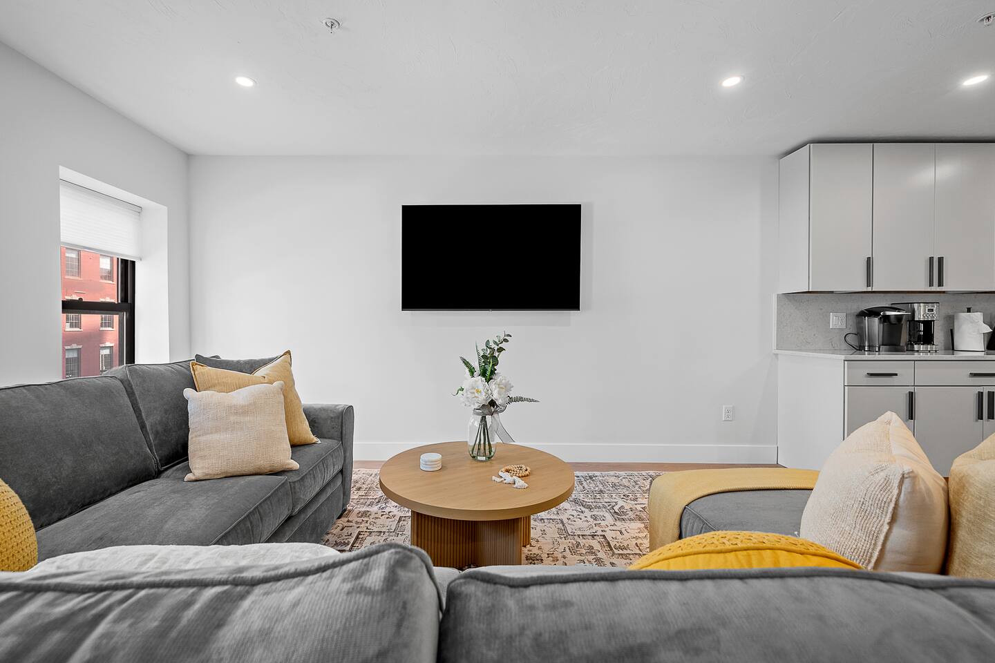 This modern and spacious luxury apartment is ALL NEW- renovated in 2025. Beautiful open concept kitchen/ living room. Three stylish bedrooms and 2.5 luxurious bathrooms. Bonus space playroom/ video games or office space. Walk to DCU center, Palladium, Hanover Theatre and Worcester's finest restaurants. 1/2 mile to Union Station 5.2 miles to Worcester Airport This apartment is perfect for city loving vacationers, traveling / hybrid employees, contract workers, displaced /relocating families